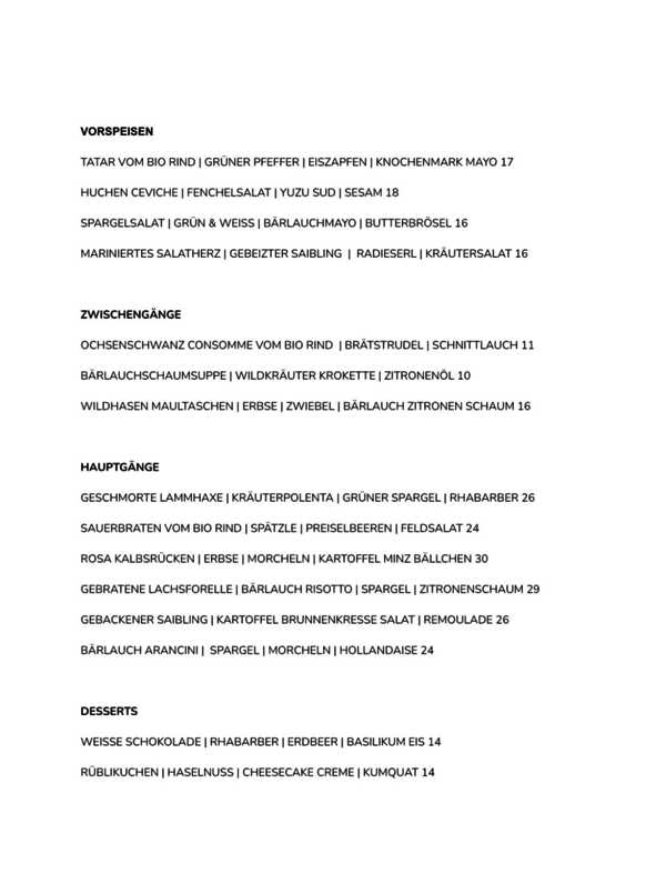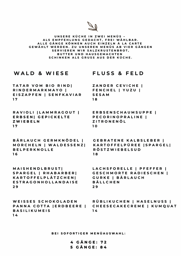 Samstag, Sonntag, Montag Abend: Abendkarte